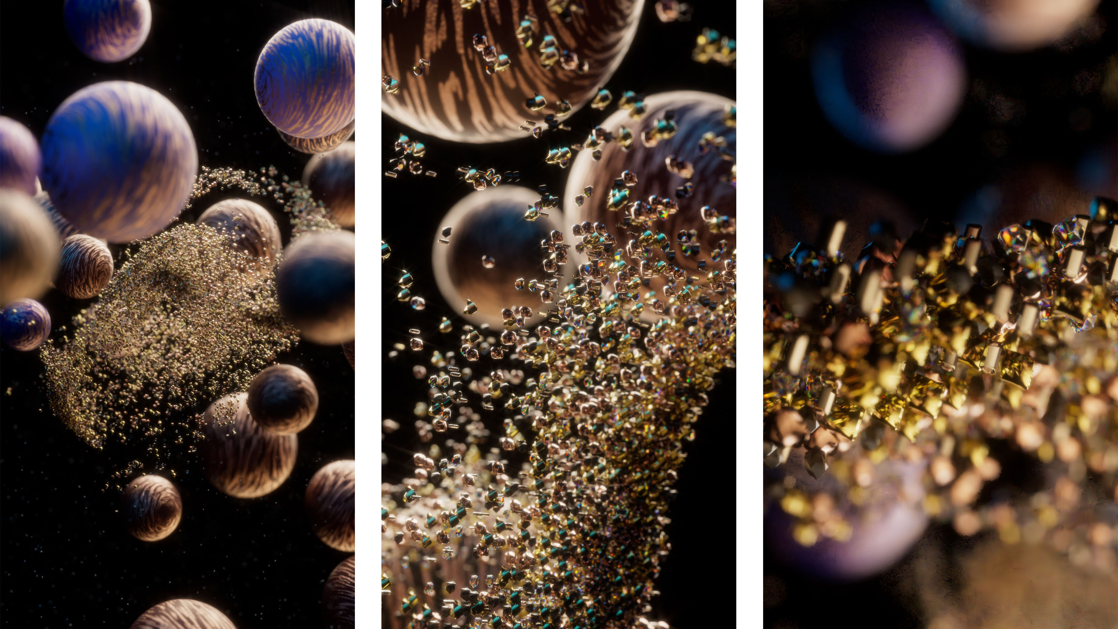 Exploring Insydium's X-particles in Cinema 4D to create abstract animated shapes with simulated fluid movements. Utilizing Greyscalegorilla plus textures, HDRI lighting with sound effects and music to create realistic yet surreal feeling animations.