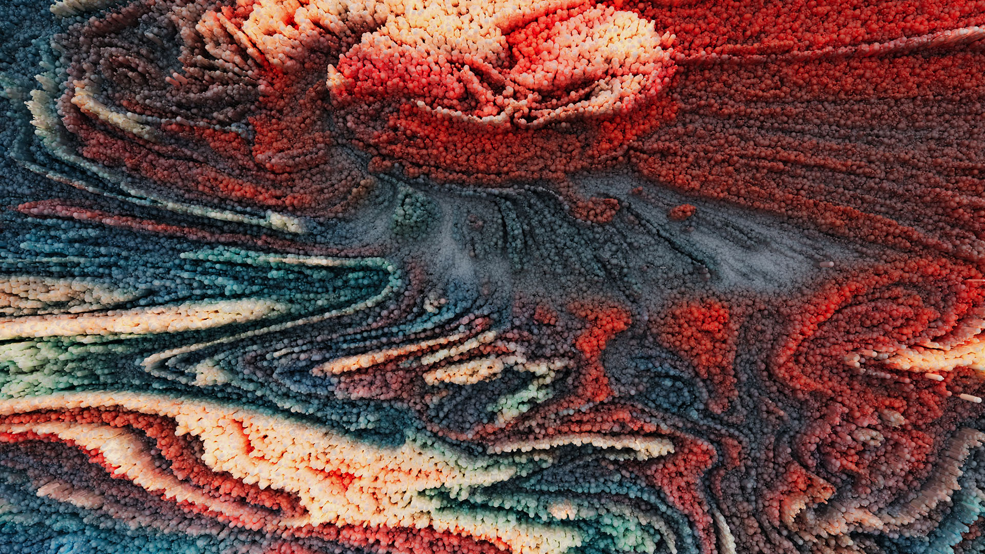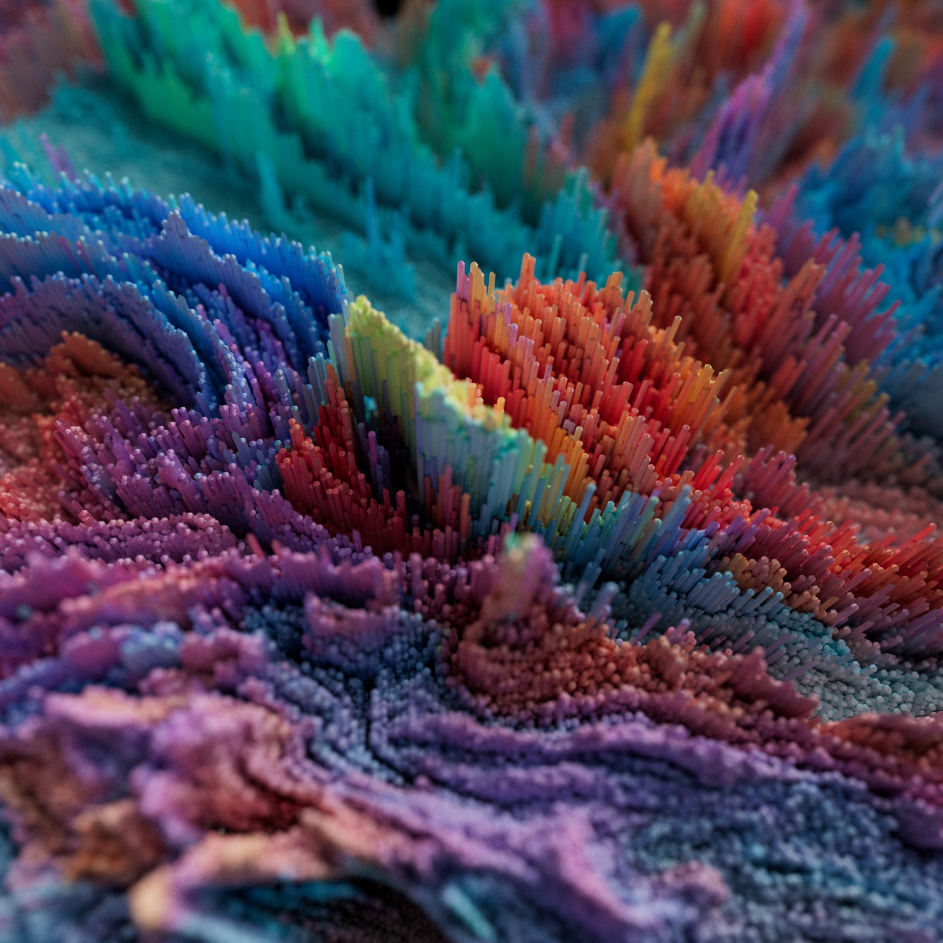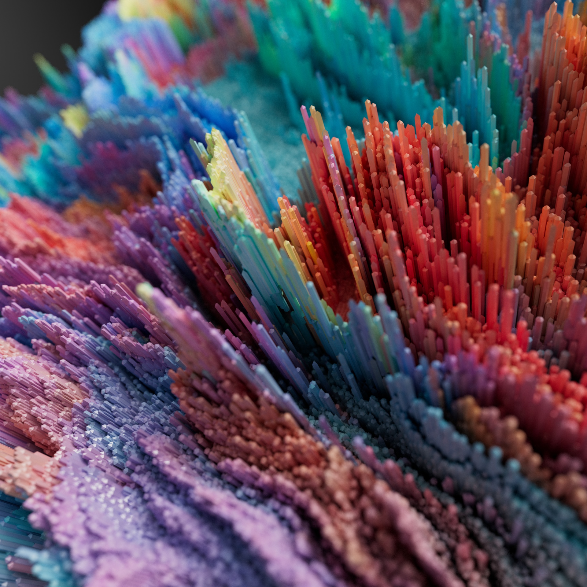 Exploring the potential of a large matrix plane with Cinema 4D shader effectors manipulating shape and motion. The unique texture and colors are a result of custom shapes and abstract photography being mapped to the matrix plane. The addition of other effectors and fields allows for unique abstract animation and manipulation.